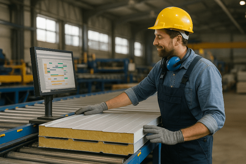 La clave para poder fabricar a medida sin perder velocidad está en la tecnología. Y no hablamos de tener “un ordenador y una web”. Digitalizar una fábrica de paneles sándwich implica transformar cada paso del proceso.